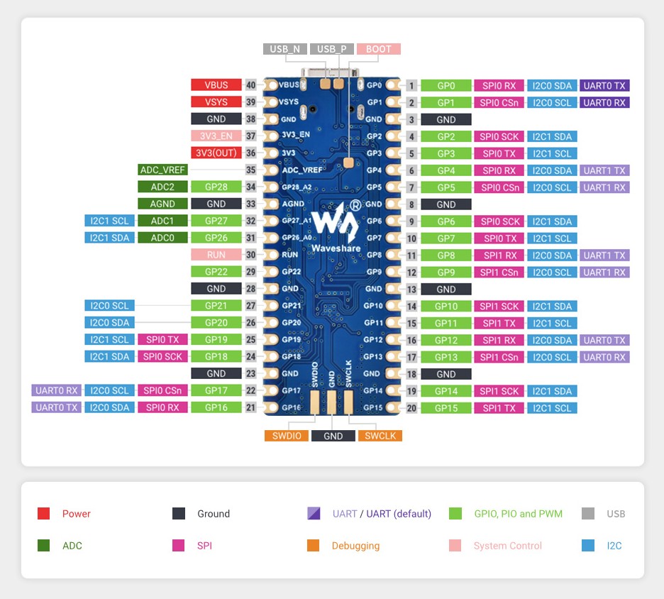 Avec ses 26 broches GPIO multifonctions, cette carte offre une grande flexibilité pour diverses configurations. Elle prend en charge plusieurs interfaces, dont 2 SPI, 2 I2C, 2 UART, 4 canaux ADC 12 bits et 16 canaux PWM contrôlables. Elle est compatible avec C/C++ et MicroPython. Elle dispose d'un SDK complet, de ressources de développement et de tutoriels pour vous aider à démarrer !